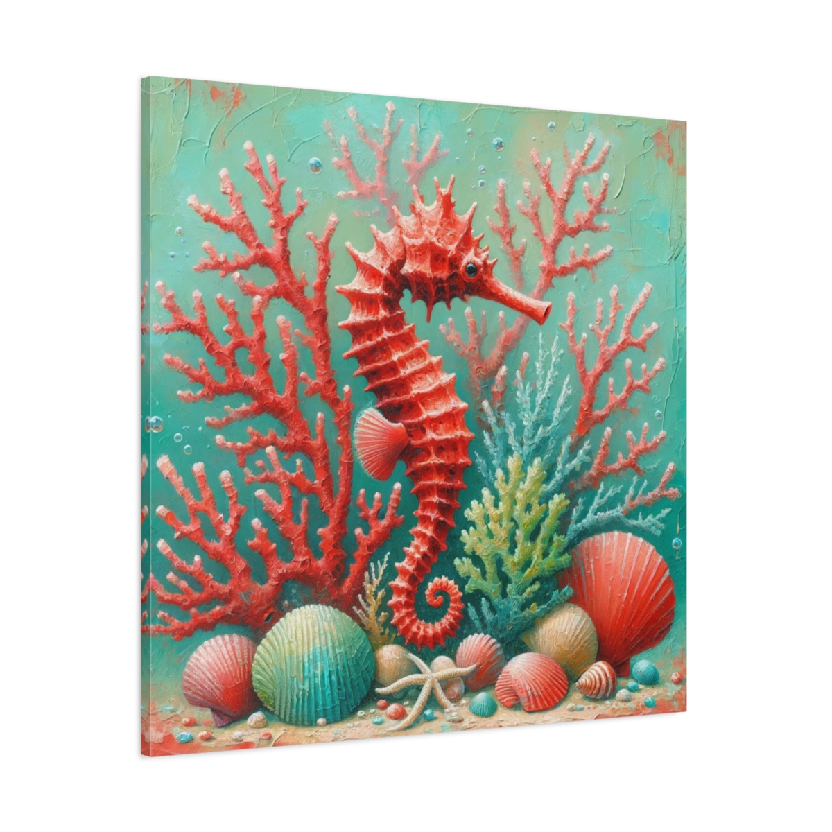 Underwater Scene With a Red Coral Reef and Seashells Standard Canvas