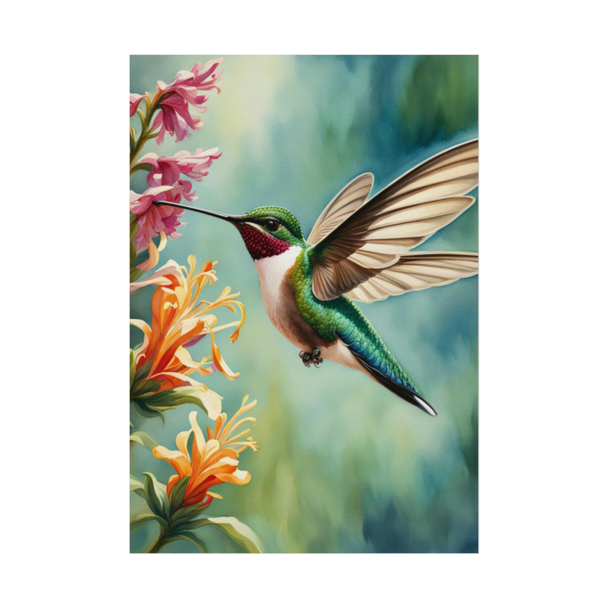Hummingbird Flower Art Poster